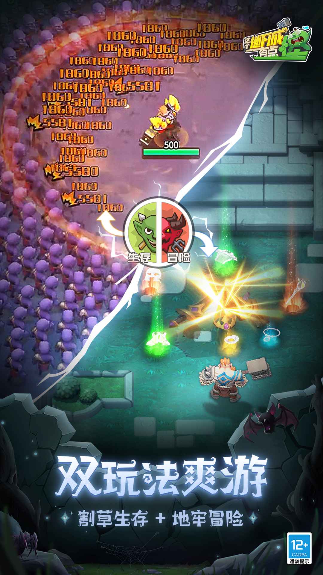 单手起飞的地下城割草爽游简介喜欢割草游戏?但是市面上千篇一律单机刷刷刷的割草游戏都不是你的菜?或许可以试一试《这个地下城有点怪》!《这个地下城有点怪》是一款单手起飞的地下城割草爽游,在游戏中玩家可以选择三种职业,无论是擅长召唤各种生物的德鲁伊,还是万箭齐发的猎魔人,亦或是精通肉搏的野蛮人,每一局游戏都能带给你更加丰富和新鲜的体验。除此之外,你还可以组建联盟,与好友组队割草~都说割草一时爽,大家一起割草才是爽上加爽!=====游戏特色=====【割草也有召唤流】开局一只熊,躺赢更轻松!地下城独有的召唤流割草,召唤多种灵兽带你飞!还有更多职业、更多流派等你挖掘,割草的姿势可不止这一种!【双玩法爽游】割草生存 + 地牢冒险,两种玩法双倍快乐!无论是在层层怪物的夹击中杀出重围,还是在变化的关卡中不断挑战更强的BOSS,都能带给你非凡的割草爽感和玩不腻的新鲜感!【单手起飞】一指刷,一直爽!指尖舞蹈,穿梭怪潮,让你享受休闲割草的轻松快感!拖拽移动、松手攻击的巧妙设计,让操作简单不无趣~【真·组队割草】告别单机割草,一起联机打怪!割草一时爽,组队割草爽上加爽!这份加倍的爽感让《这个地下城有点怪》带给你~