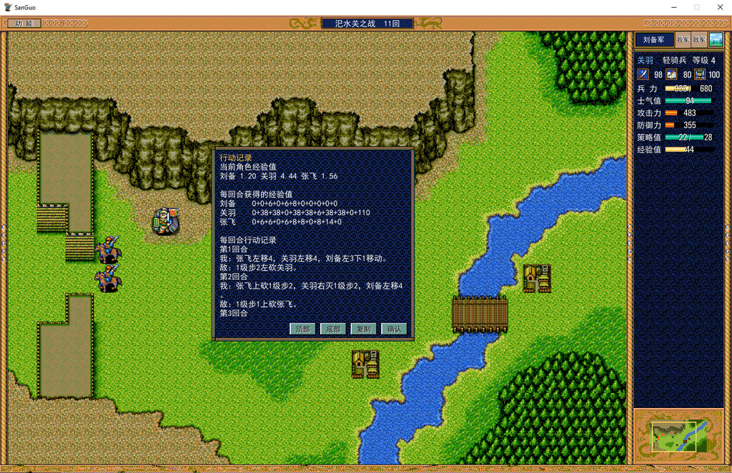 增加了单通双通模式,即用程序限制了只能选定角色有攻击输出,刘备仅可移动使用无经验道具,其他非NPC角色不会出战,或无法操作,不能选有50点经验的胜利等。