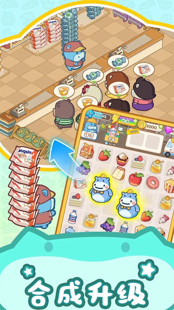 数百万用户一致好评的全新画风Q萌+模拟经营+合成消除游戏《疯狂搬超市》重磅来袭! 欢迎来到河马超市,你准备好致富了吗?成为世界上最富有的超市大亨! 呆萌的小河马想开一间超市,但是它没有经验需要帮助,而你或许能改变现状!刚开始超市物品匮乏,需要发挥你的才能, 完成顾客订单去赚取金币,将获得的金币用来装修你的超市,从一个小超市,慢慢打造成一家全球连锁大超市! 喜欢休闲模拟经营游戏 & 合成游戏?《疯狂搬超市》是你最好的选择! 在疯狂搬超市里你可以: • 作为店长去管理超市 • 合并零食、饮料、玩具、化妆品等琳琅满目的商品! • 在休闲时间轻松合合合,锻炼你的手指并测试你的技能和策略。 • 完成众多任务已获得成就和奖励 • 发挥创意设计&翻新你的超市建筑,享受设计的快乐! • 与世界各地的玩家共同享受团体活动,一起享受上瘾的合成挑战 怎么玩: 1. 点击带有闪电标志的生产品,产出各种物品元素供你合成。 2. 将两个相同的物品元素拖到一起以合成升级它们。 3. 查看合并界面顶部订单栏,合并他们需求的物品以完成顾客订单,赚取金币奖励。 4. 累积足够金币,完成建造任务,可打造你的专属超市,还能解锁更多有趣好玩的新区域! 如果你是模拟经营/合成游戏狂热者?想体验经营超市合成消除的快乐,想在空闲时间找点乐子,这款疯狂搬超市手游就是为你量身打造的! 立即下载,随时随地畅玩!