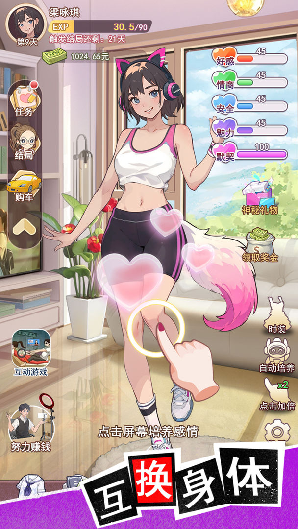 《我变成了妹子2》是一款融合了模拟经营、解谜、性转、换装等元素的休闲小游戏。单身小哥意外变成了漂亮女生,慢慢揭开层层迷雾逐步寻找事情真相的故事。 游戏特色: 【邂逅性格迥异的美少女】 两人身体意外互换,从零开始的亲密生活!原本吃饭、洗澡、睡觉、穿衣服等日常生活中最简单的事情竟会变得如此尴尬!? 【无厘头的玩法线索推理】 收集线索,解谜别样的故事情节;没有绝对的对与错,仅需遵于本心前进,或许完美的结局就在于你的脑洞是否够大。 【意料之外的多种结局】 变成妹子30天后会自动解锁结局,与多位美少女展开惊心动魄的故事,究竟哪一个才是和她的完美结局?