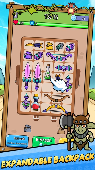 【Heroes galore】With a backpack and strategy, summon and merge dozens of heroes to build your ultimate battle team.