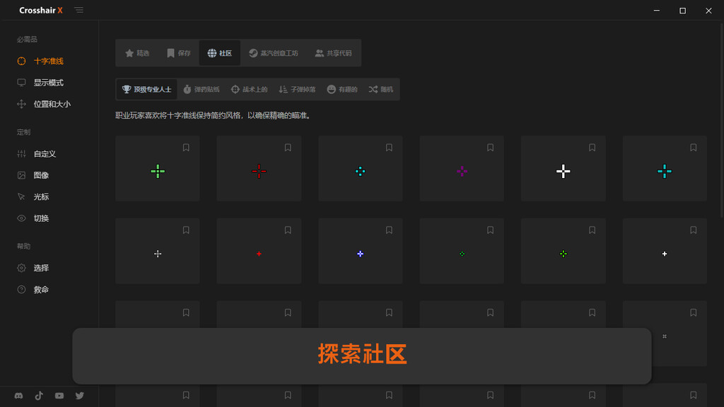 通过自定义十字准星的清晰度、准确性,可以大幅度提升游戏中的竞争优势。您可以从具有特色的“精选”界面开始,或者参考“社区”内的准星设计,然后进行调整来创建适合自己的游戏方案,从而将您的目标提升到一个全新的水平。