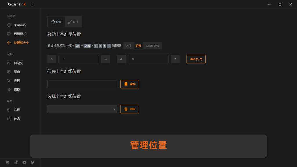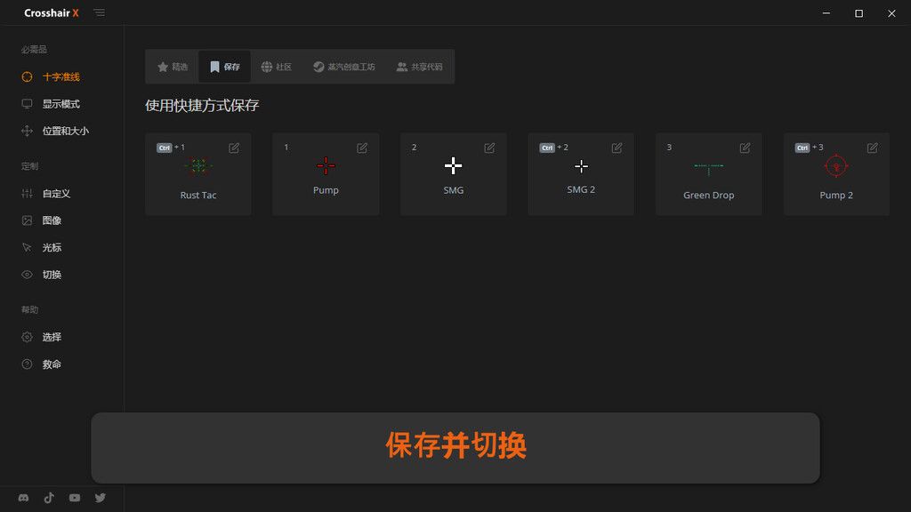 在任何显示器上显示您的十字准星,并为不同的游戏管理已保存的位置