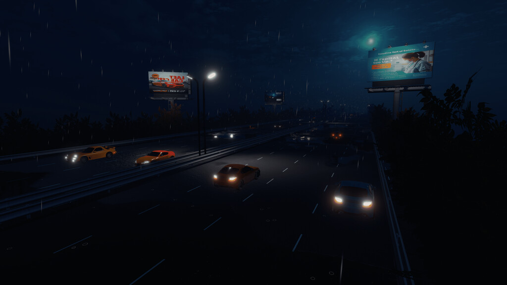 We offer the opportunity to ride on a highway map. On this map, you can enjoy the thrill of night riding with a dynamic atmosphere.