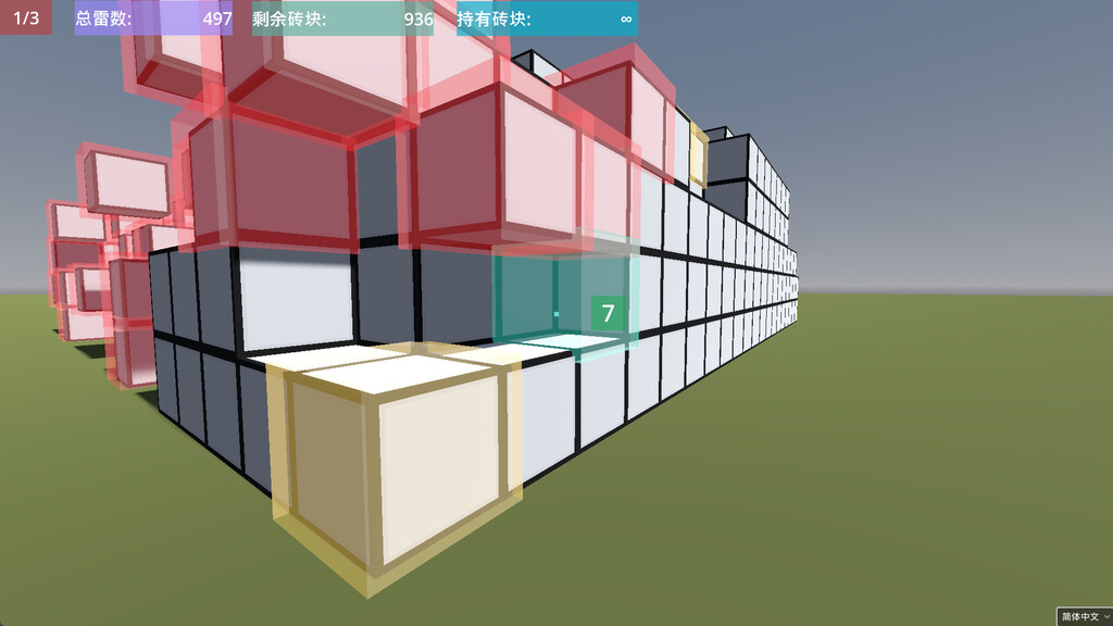 玩家需在3D棋盘中,通过计算每个立方体周围26个相邻方块,精准推算雷区分布,逐步揭开隐藏的地雷网络。