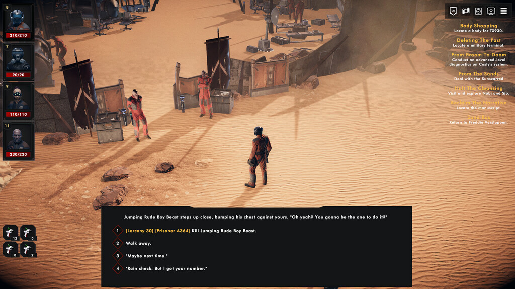 是一款沉浸式等距角色扮演游戏,灵感来源于《辐射2》、《旧共和国武士》、《辐射:新维加斯》等经典作品,以及《荒原3》、《封存》、《殖民船》、《楚格勒德》和《开拓者:拥王者》等更现代的标题。每一个决策,角色发展中的每一个细微差别都会带来实际的后果。除了战斗,游戏还强调替代进展策略,邀请玩家利用角色的独特能力以创造性和外交的方式来穿越叙述。