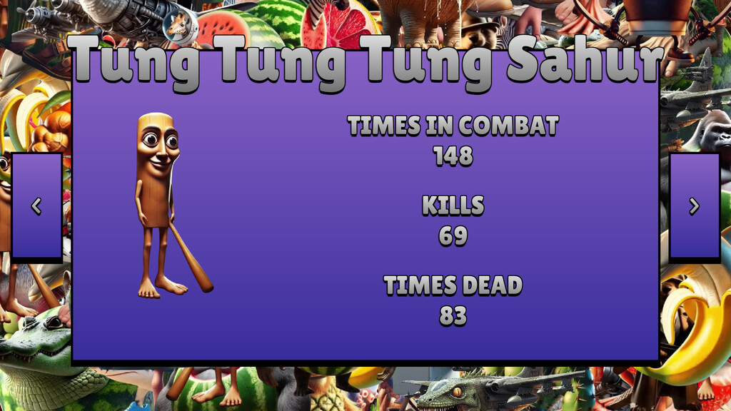选择您喜爱的 Brainrot 角色,观看他们在模拟战斗中的对决 ⚔️