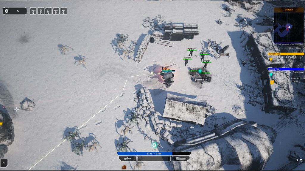 顶着变异生物的攻击采集辐射汽油,召唤无人矿机,背上反应堆燃料,返回基地。点燃反应堆,启动气候控制系统,扩大安全区域。越远的采集区会有更高的燃料资源,但走出安全区也会有更高的风险,高风险高收益!