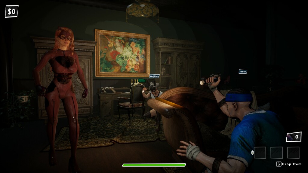 是一款在线合作恐怖劫案游戏,你和最多4名好友将面对阻挡在各处宝藏前的