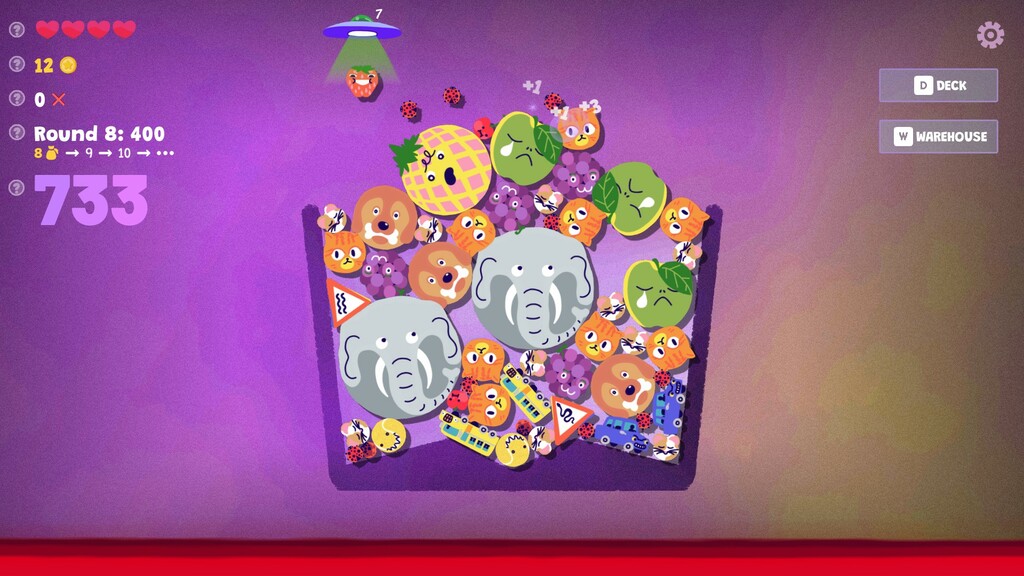 《史蒂夫的仓库》灵感来源于《合成大西瓜》和牌组构建式类Rogue游戏(例如《弹球哥布林》、《幸运房东》和《小丑牌》)。让物理引擎自由发挥,创造出最爽快的连锁和最搞笑的死局吧